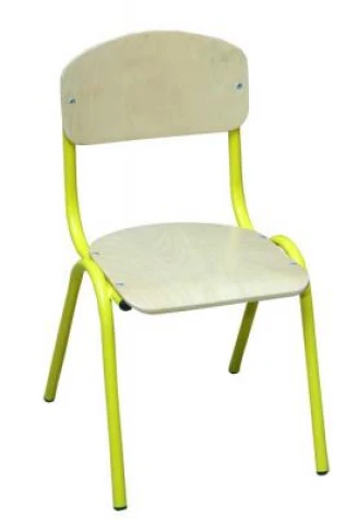 Стул детский ISO ростовая группа №3 Габаритные размеры: 300х315х340 мм. Вес: 2,16 кг. Спинка и сиденье изготавливается из гнуто-клееной фанеры толщиной 7-8 мм. Фанера покрывается акриловым лаком на водной основе. Каркас изготавливается из круглой металлической трубы d16х1,2 мм. Покрытие наносится напылением порошковых полимерных материалов. Торцы труб защищены пластмассовыми наконечниками d16 мм. Цвет каркаса: желтый, салатовый (RAL6018) или серый (RAL7035).