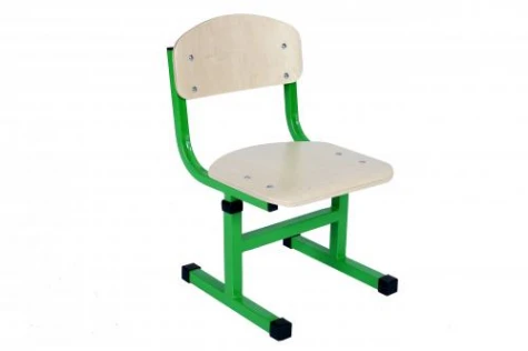 Стул детский Т-образный на квадратной трубе, регулируется на ростовые группы №1-3 Габаритные размеры: 310х315х539-619 мм. Высота сиденья: Н-260-340 мм. Вес: 2,51 кг. Каркас изготавливается из квадратной металлической трубы 20х20 толщиной 1,2 мм. Покрытие наносится напылением порошковых полимерных материалов. Торцы труб защищены пластмассовыми наконечниками. Спинка и сиденье изготавливаются из гнуто-клееной фанеры толщиной 8мм. Фанера покрывается акриловым лаком на водной основе. Цвет каркаса: желтый, салатовый (RAL6018) или серый (RAL7035).