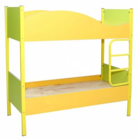 Кровать детская 2-ярусная Габаритные размеры: 1456х650х1408 мм. Вес: 44,62 кг. Каркас - квадратная металлическая труба размером 20х20 / 1,2 мм и прямоугольная 40х25 / 1,5 мм. Материал - ДСП ламинированная, толщина 16 мм. Фасад оклеенного кромочного лентой ПВХ 1 мм. Металлическая стойка с лестницей. Верхние боковины округлены. Возможны комбинации цветов: Цвет каркаса: желтый; цвет ДСП бук. Цвет каркаса: желтый; цвет ДСП: лайм / апельсин. Цвет каркаса: желтый; цвет ДСП: синий / желтый. Цвет каркаса: желтый; цвет ДСП: лайм / желтый.