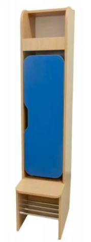 Шкаф детский 1-местная с фигурными дверями (хромированные трубы) Габаритные размеры: 322х550х1560 мм. Вес: 24,6 кг. Материал: корпус, полки, стойки - ДСП ламинированная, толщина 16 мм. Задняя стенка: ДВП ламинированная белая 3 мм. Фасад оклеенного кромочного лентой ПВХ 1 мм; другие части шкафа ПВХ 0,5 мм. Крючки для мебели хромированные малы. Цветная дверь с вырезом. Закругленные углы. Труба хромированная d = 16 мм. Комбинации цветов: бук / апельсин, бук / красный, бук / синий, бук / желтый, бук / лайм.