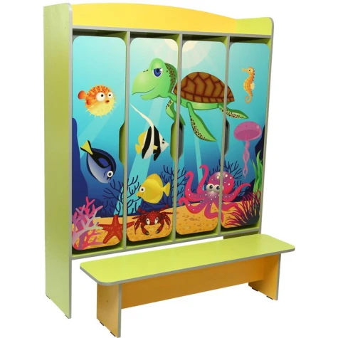 Шкаф 4-дверный для раздевалки с фотопечатью «Подводный мир» со скамейкой 1240х350х1610 мм