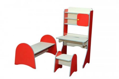 Все о товаре Стенка детская «Больница детская, Красный, Беж (3 элемента:кровать, стол, табурет) 16мм»