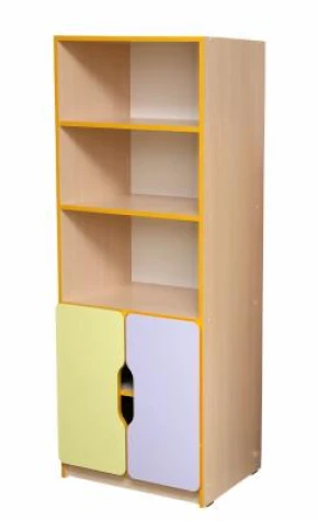 Габаритні розміри: 600х410х1594 мм. Шафа напівзакрита 2-дверна. Фасади та корпус шафи виготовляються з ламінованої ДСП товщиною 16 мм. Можлива комбінація кольорів: Колір корпусу: бук, колір фасаду: жовтий/лайм. Колір корпусу: дуб молочний, колір фасаду: жасмин/лаванда.
