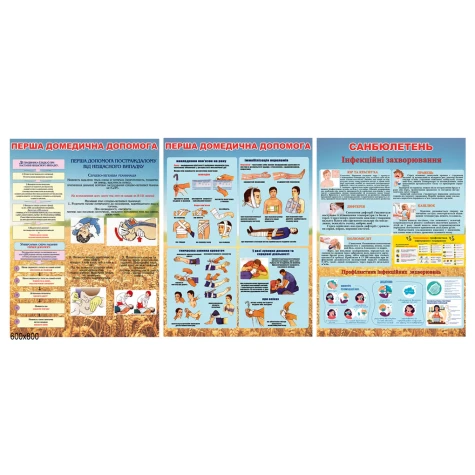 Комплекс стендів з домедичної допомоги. Розмір кожного: 600х800мм.