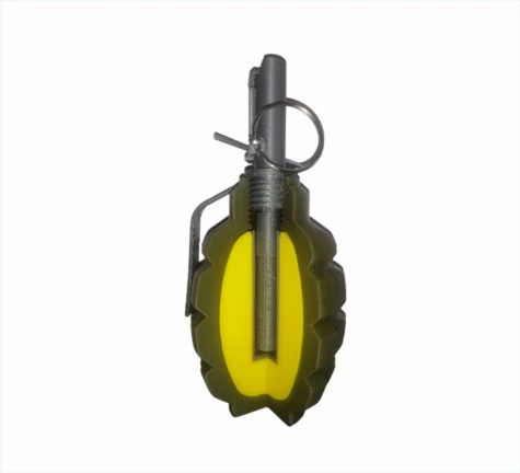Пластиковий навчальний макет гранати Ф-1, нерозбірний. Виконаний у розрізі для демонстрації пристрою гранати.