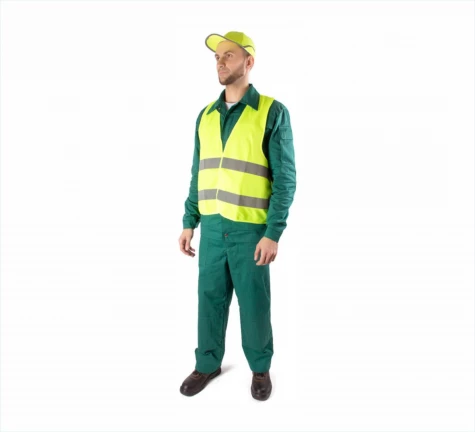 Світловідбивний жилет з двома горизонтальними світлоповертаючими смугами.